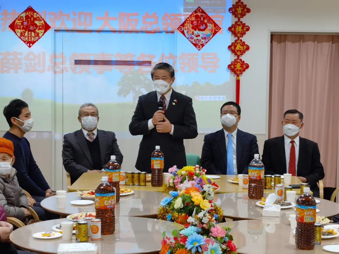 3月21日,薛剑总领事前往大阪府东大阪市和八尾市,看望慰问日本战争遗孤及其子女亲属群体,经商处主任郭强等陪同。